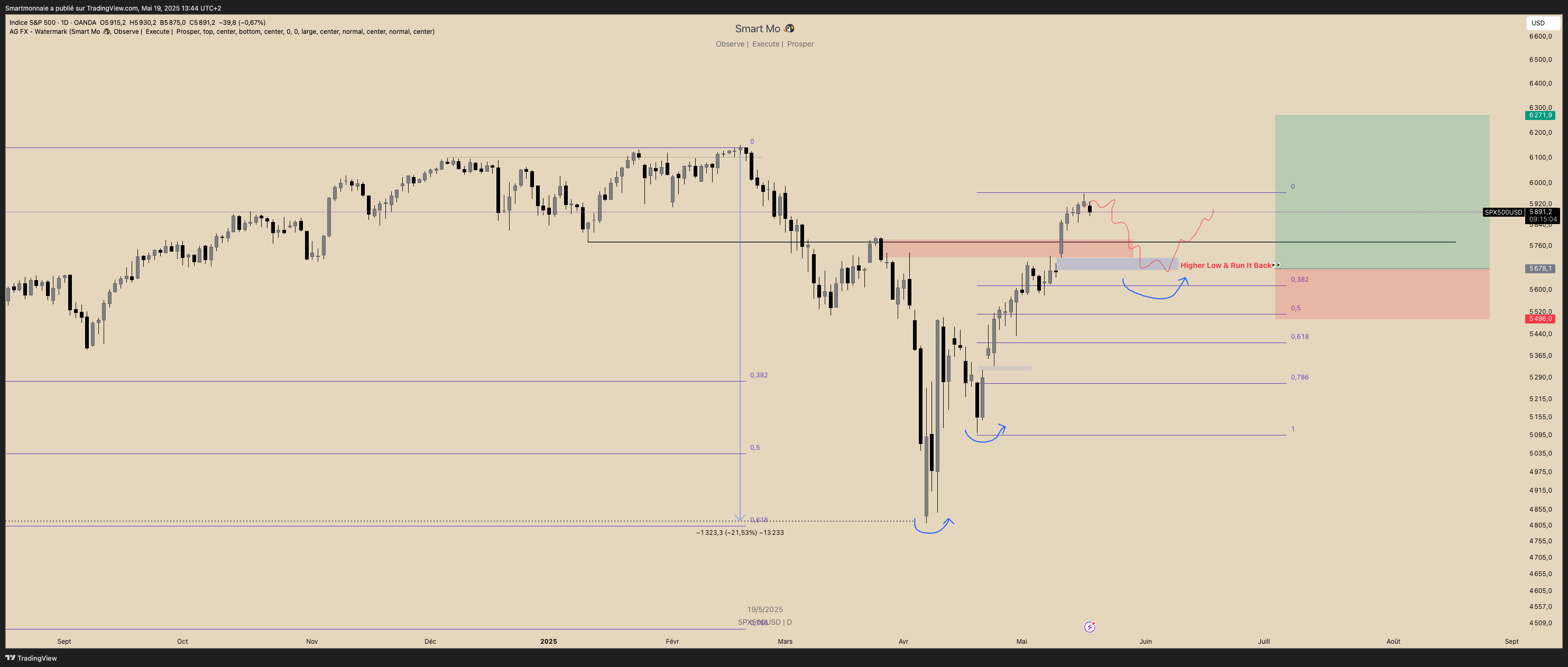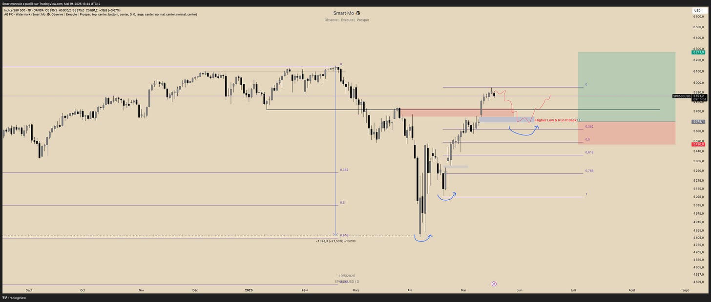 Un niveau résonne beaucoup : bien qu’on n’ait aucune certitude d’aller aussi bas, on commence à avoir plusieurs éléments de confluence. On n’a jamais retesté notre MSB (Market Structure Break).