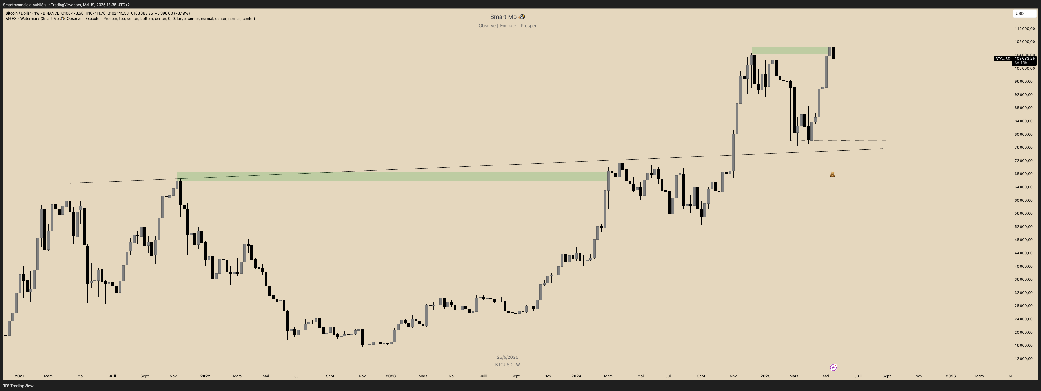 Le Bitcoin nous a réaliser sa plus haute cloture weekly all time (106 482$).
