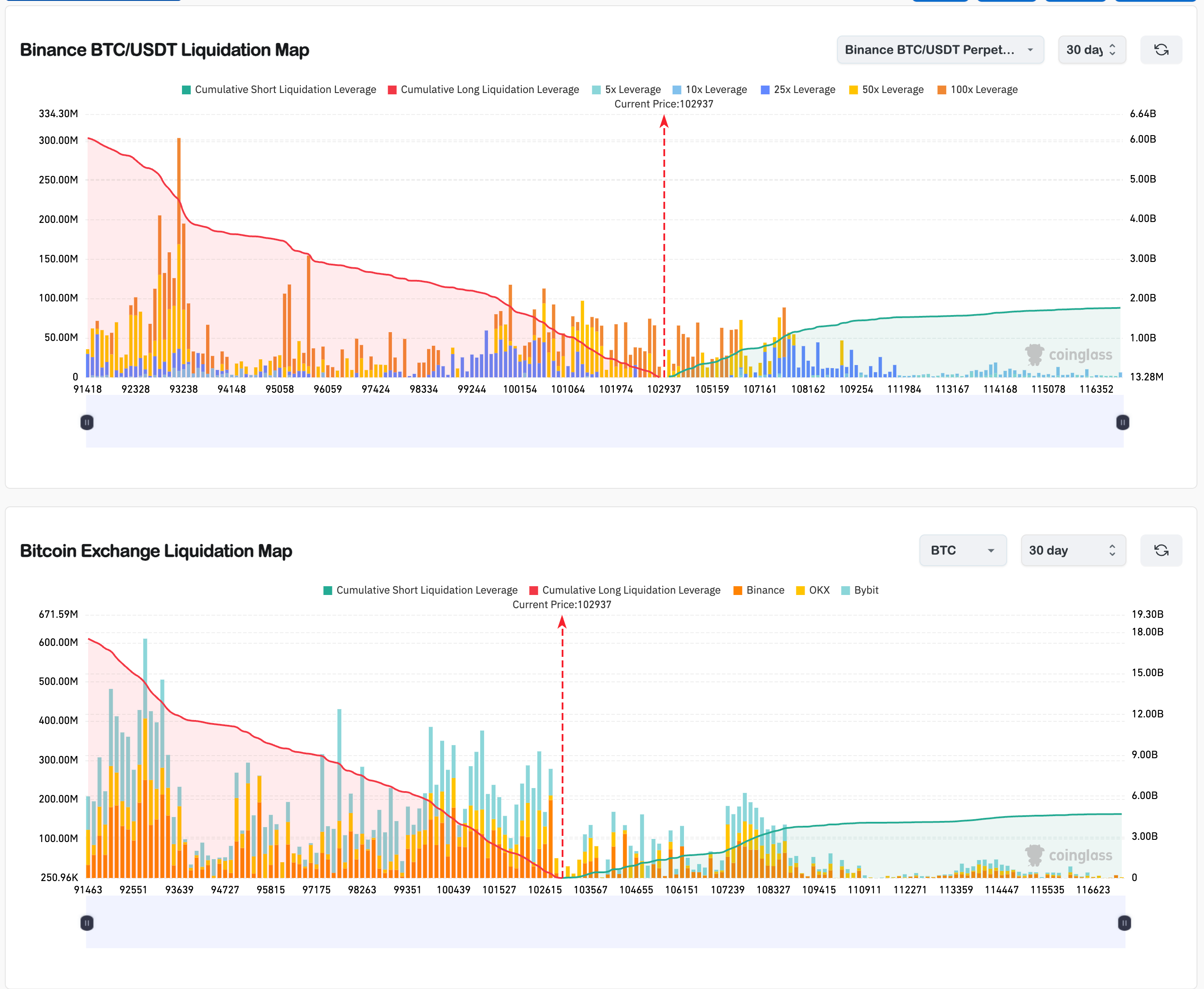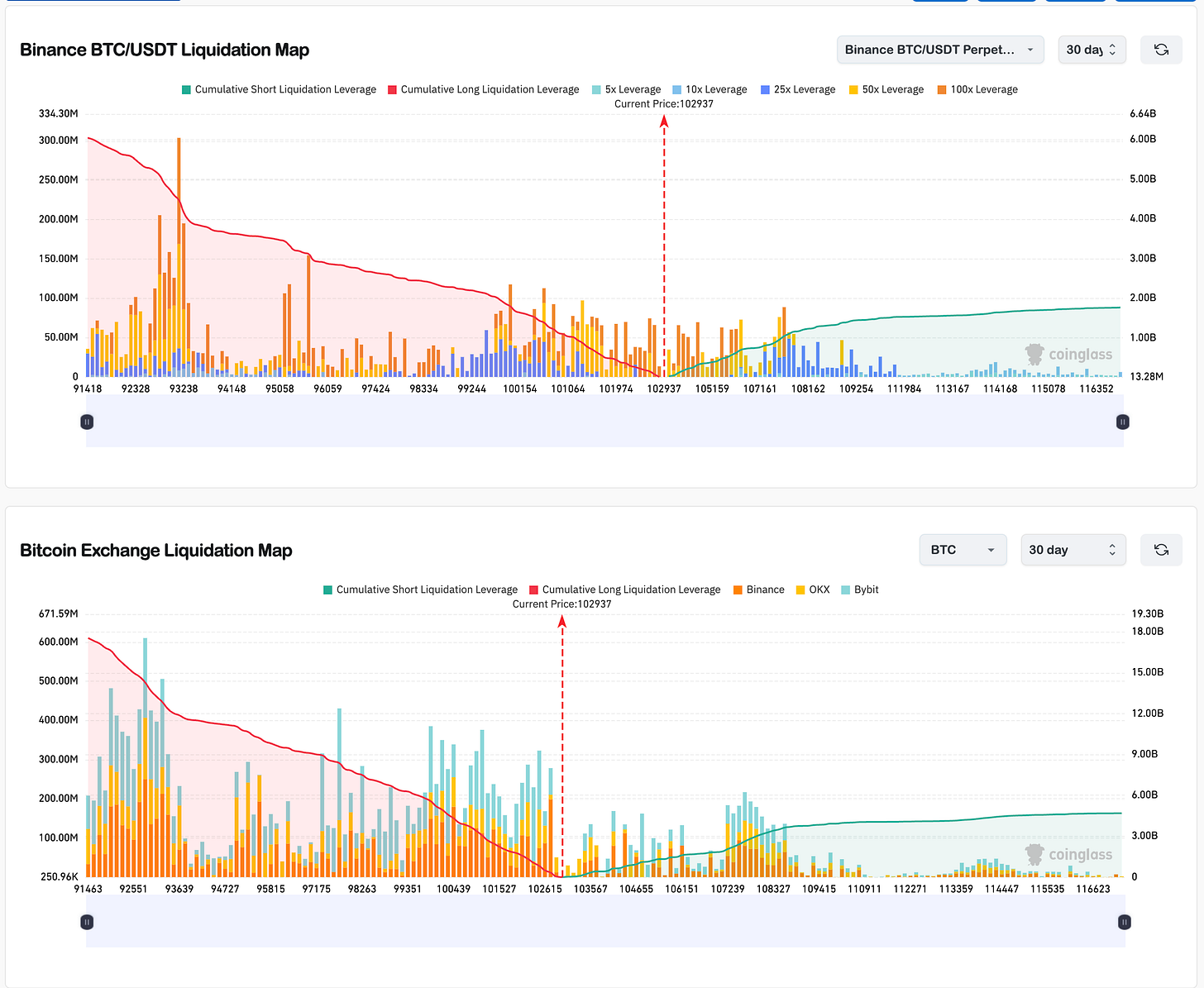 Si on prend un peu de recul sur la liquidation map, on le voit aussi assez clairement : la balance des trades engagés est déséquilibrée (6 milliards de long à 91K $ contre moins de 2 milliards à 116K $). En ce sens, il n’y aurait donc pas vraiment de surprise si le marché se décidait à chatouiller ceux qui se sont décidés tardivement à long le marché, avant de s’attaquer à une nouvelle jambe de hausse.