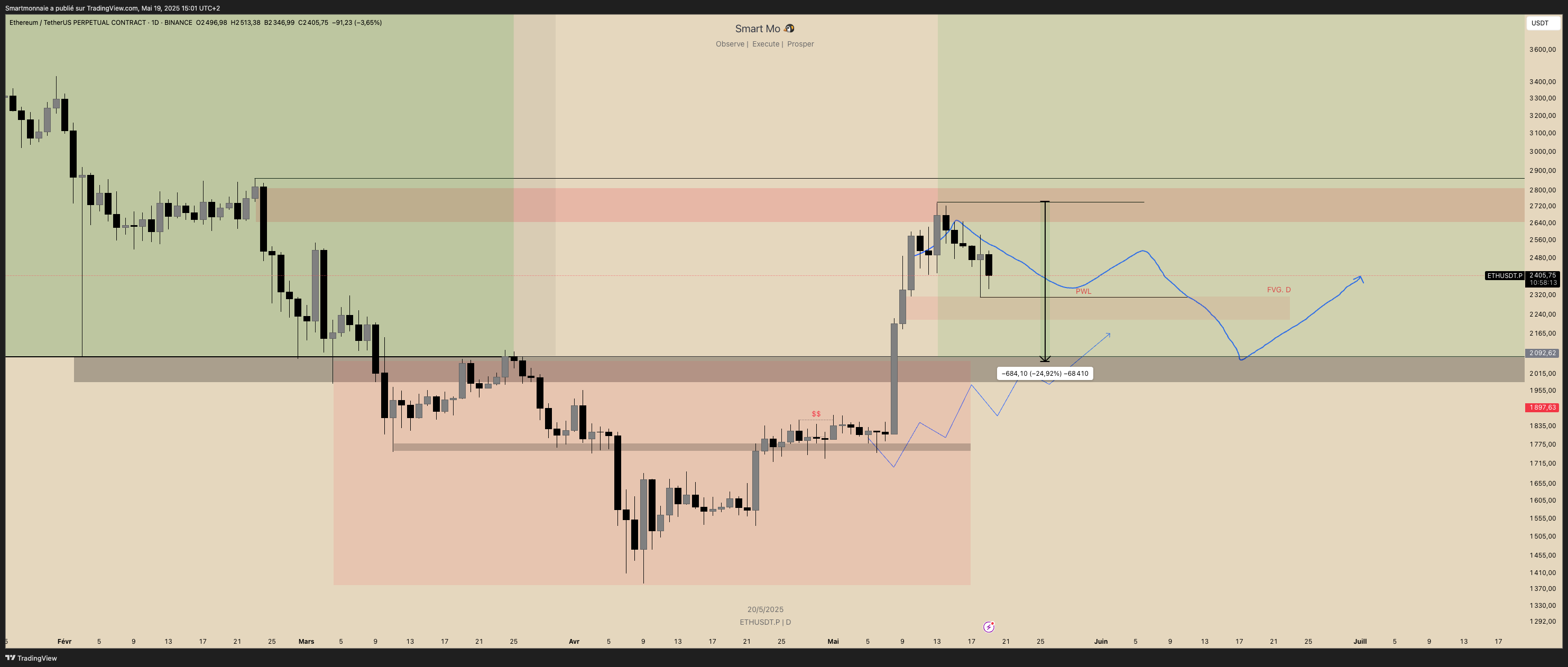 Désormais, on doit, au pire des cas, tenir ce niveau en support pour initier le mouvement vers les 4 000 $ et potentiellement son nouvel ATH. Une zone essentielle à tenir en grosse time frame.