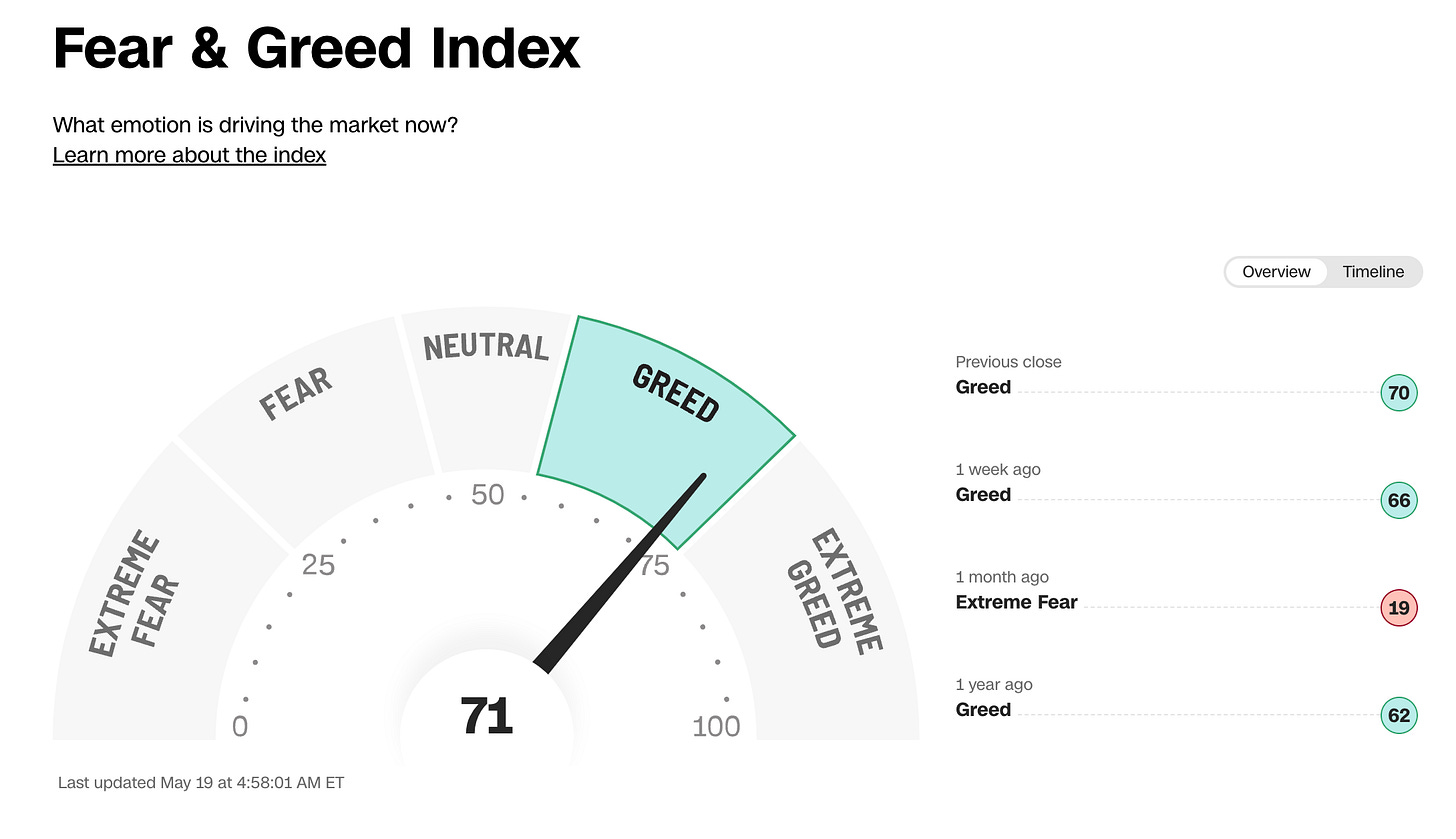 L’euphorie commence est revenu assez fort en bourse également en passant de seulement 4 proche de ses points bas à un 71 ces derniers jours.