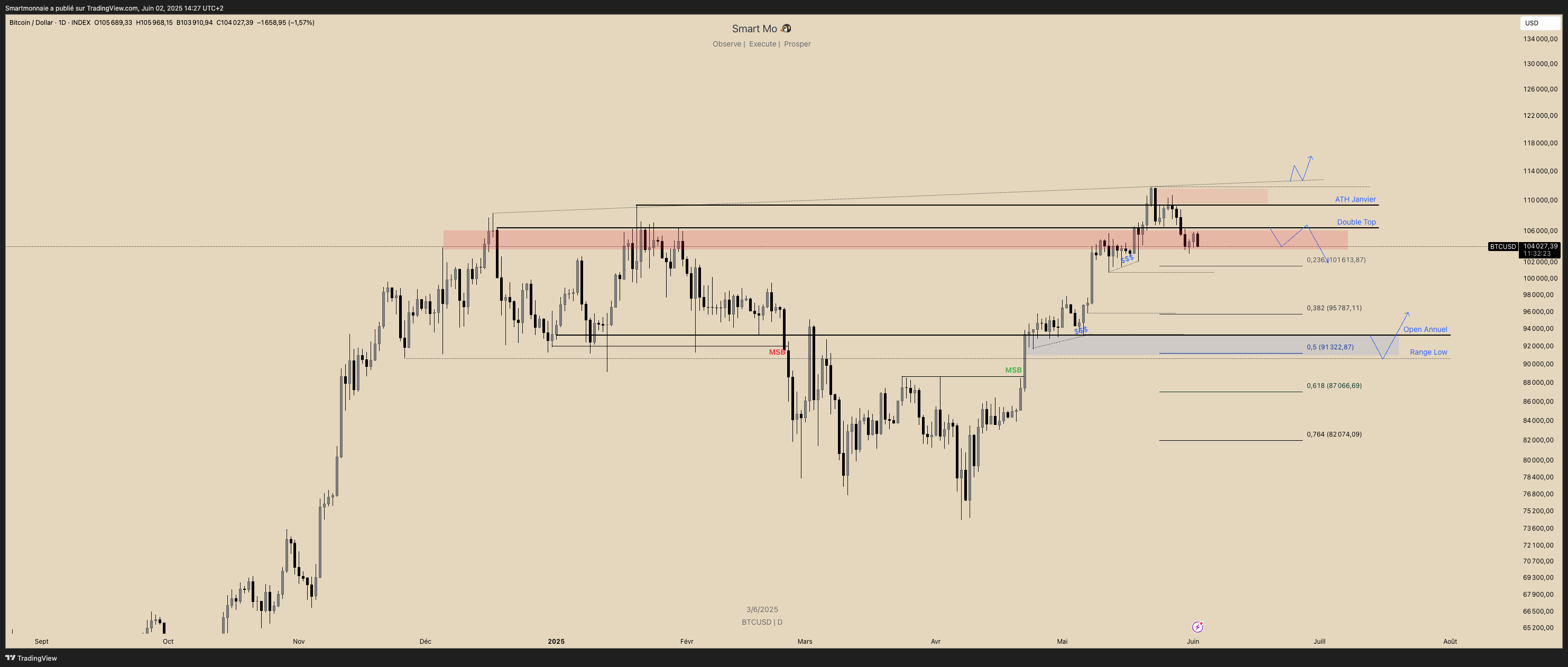 - Si ce support cède, la zone des 91 000 $ pourrait être sweep. Elle représente une zone de confluence importante :