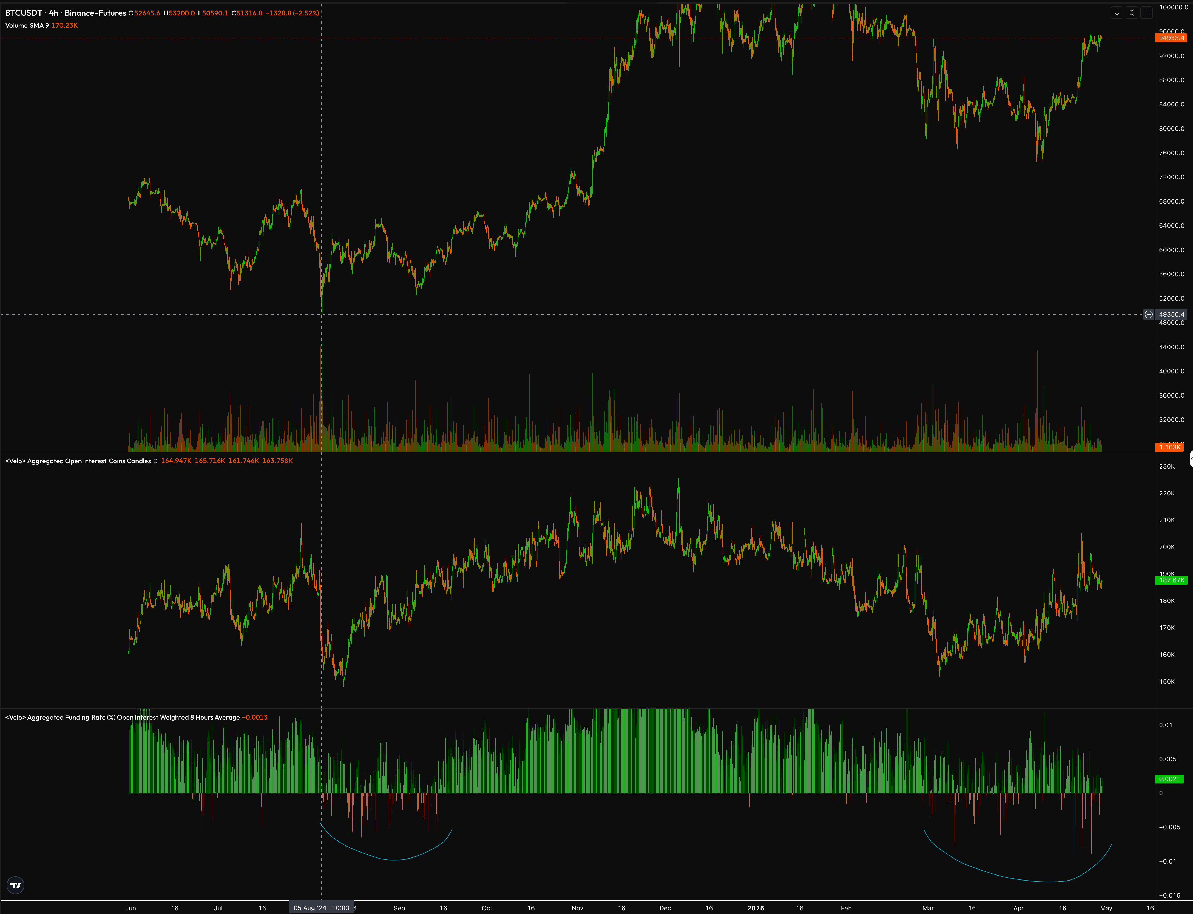 - Funding Rate : on observe une accumulation de funding négatif similaire à celle d’août 2024. Cela traduit un excès de pessimisme chez les vendeurs à découvert souvent un bon carburant pour une jambe haussière.