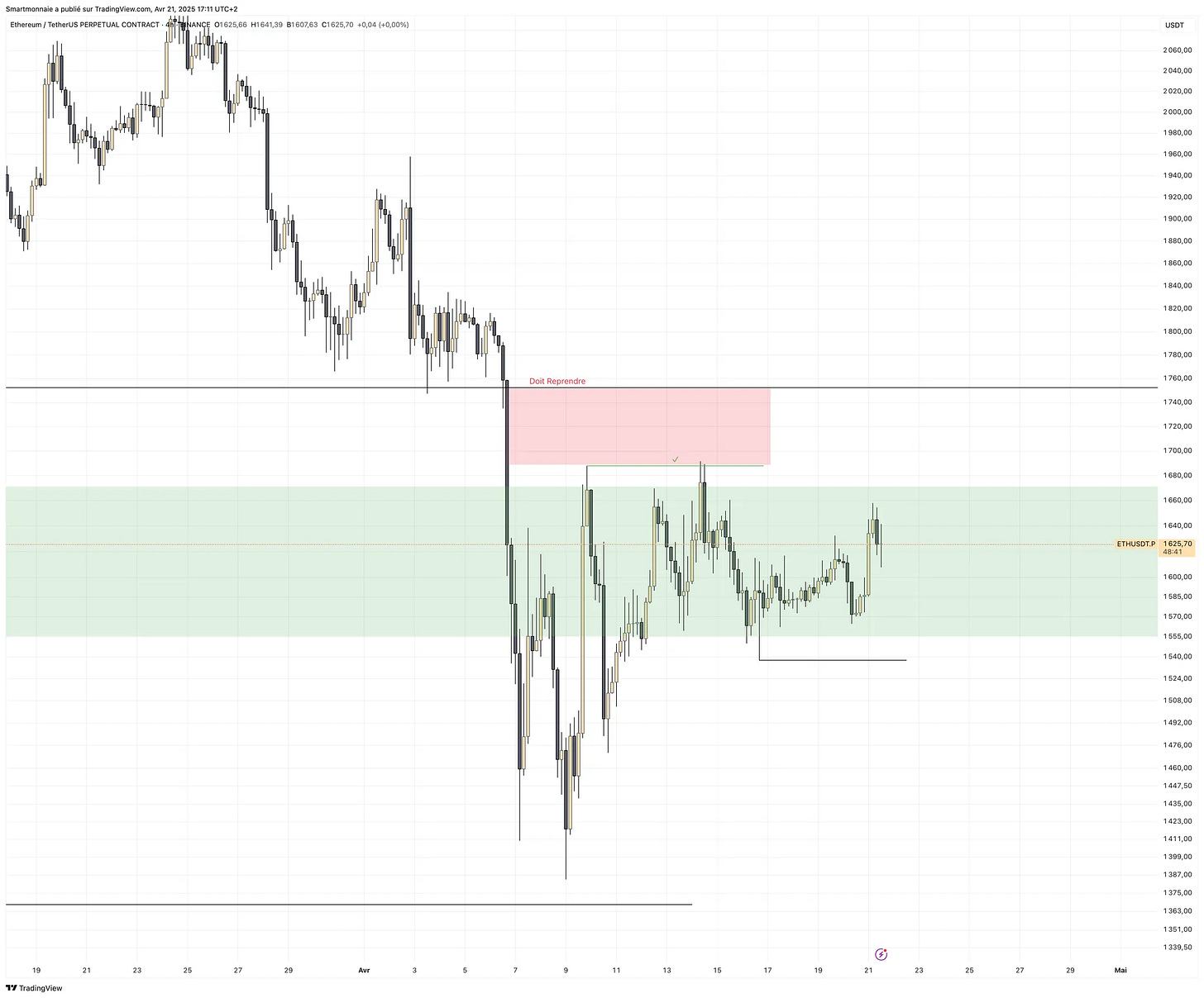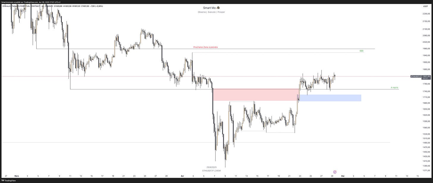 Conclusion : si la tendance haussière veut se poursuivre, le scénario le plus logique serait un front-run de cette zone des 88k voire une montée directe sans y repasser. À surveiller de près.