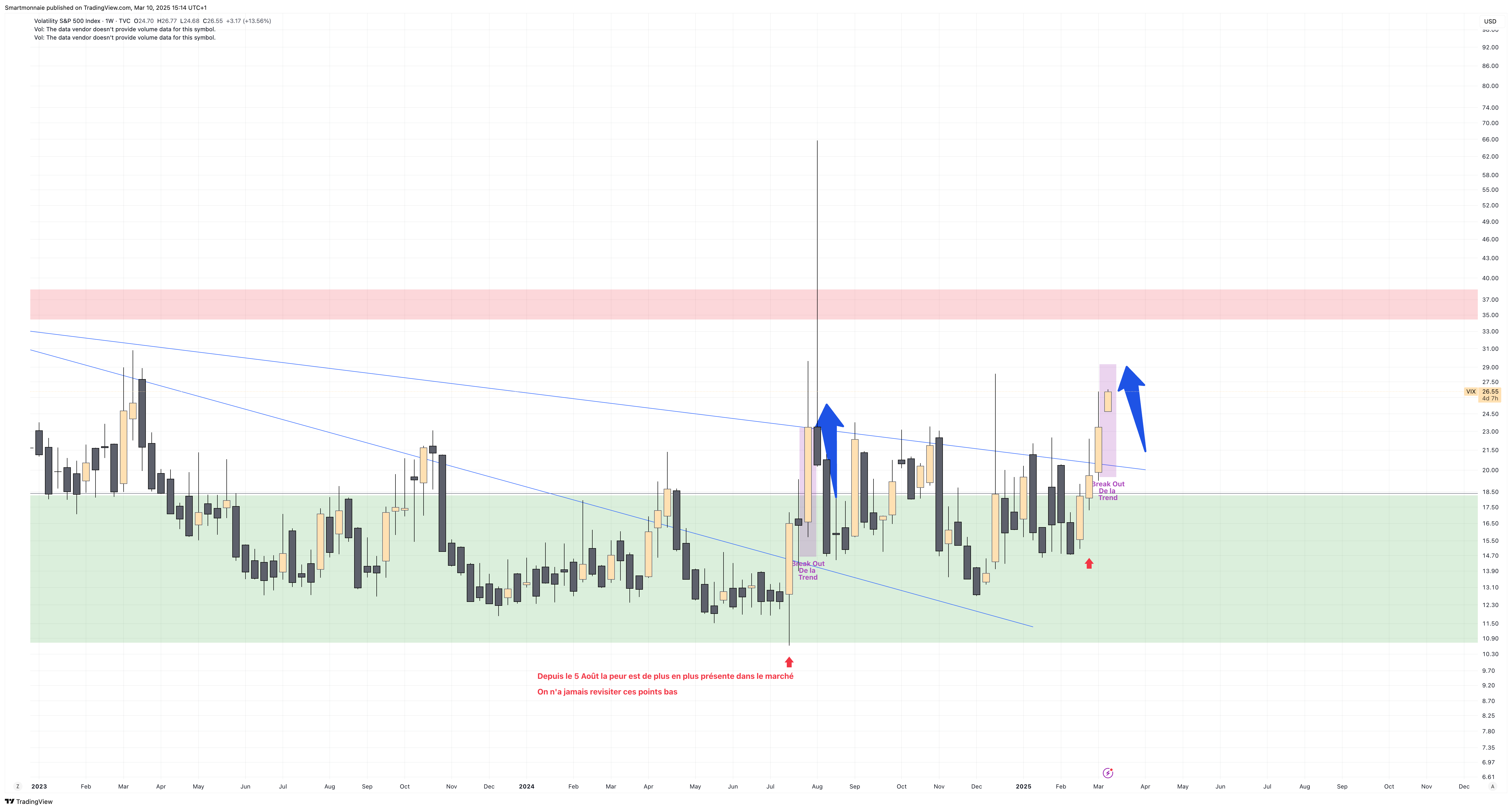 La bourse américaine trinque assez sévèrement sous les effets de l’incertitude et de la peur comme en témoigne le vix (Indice de la peur)