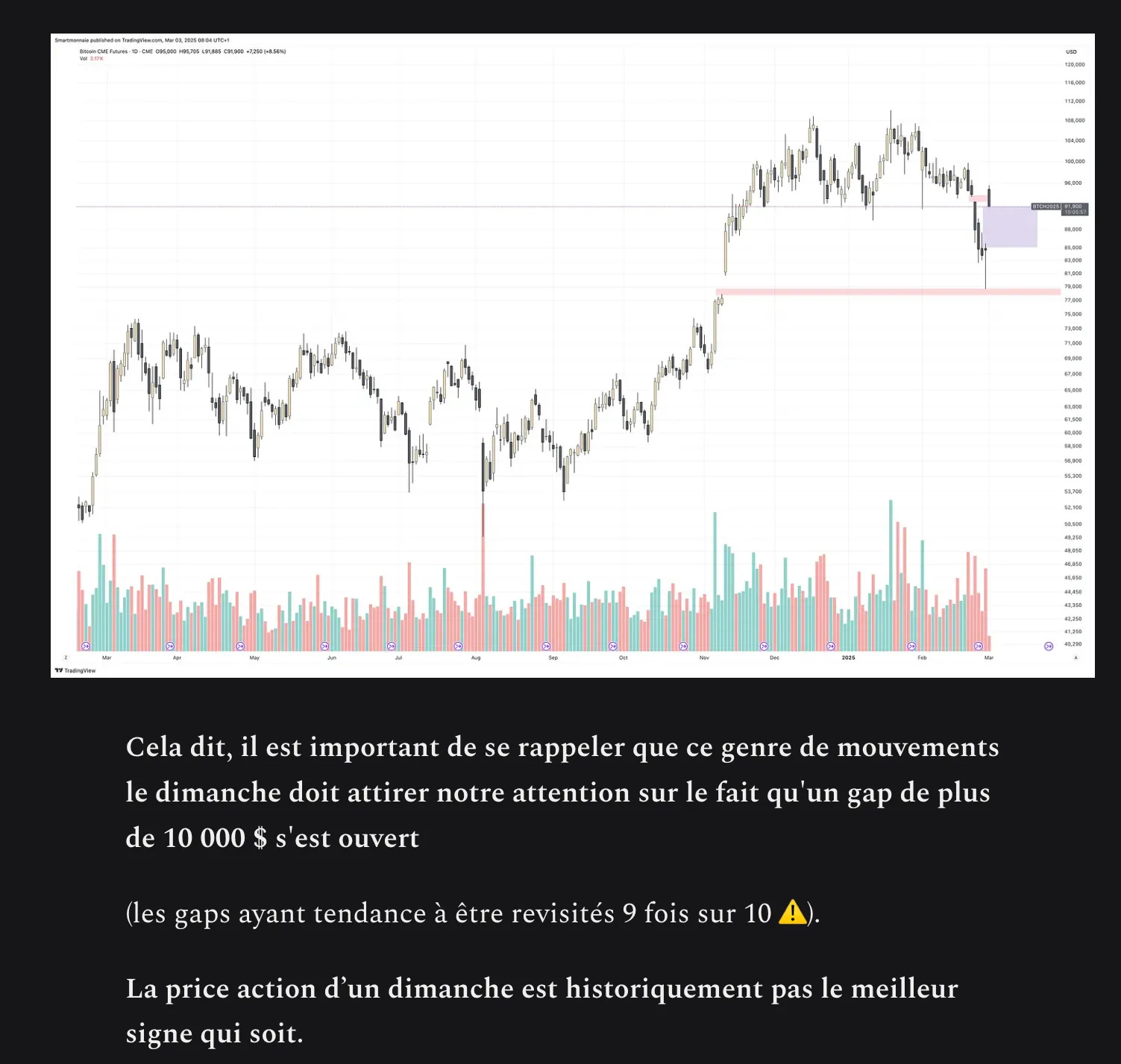 - Gap CME:La semaine dernière on vous en parlait de ça ☝️Comme vous le voyez on évite donc de donner du crédit à la price action d’un week-end que ce soit à la hausse comme à la baisse.